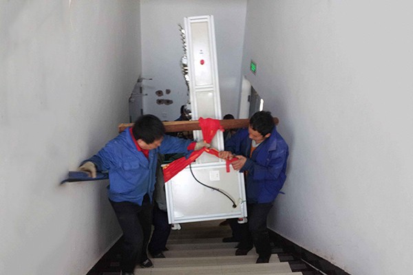 ④在楼梯拐弯时要当心碰撞,慢慢调整好方向,然后重复第2个步骤再抬起往上搬。